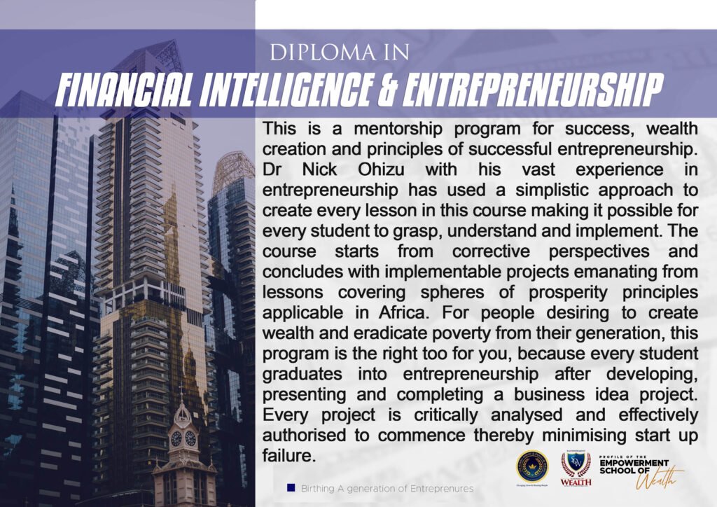 The ESOW is specifically designed for Africans and third world countries to provide timely education to empower them to succeed in key areas of life namely: Financial Intelligence/Entrepreneurship, Marriage and Mentorship in Personal Success. In addition to the above programs, the school offers a Succession Training Program to equip people who are lined up to take over successful family-owned businesses. With its breadth of perspectives and depth of knowledge, the school also offers strategic consulting services to assist organizations and entrepreneurs to navigate complexity and drive change in this transformative age while achieving optimal and sustainable results.